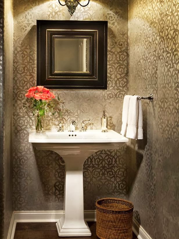 Go Graphic : Think you can’t do graphic wallpaper in a small space? Think again! A small bathroom is the perfect place to try out a daring wall treatment.